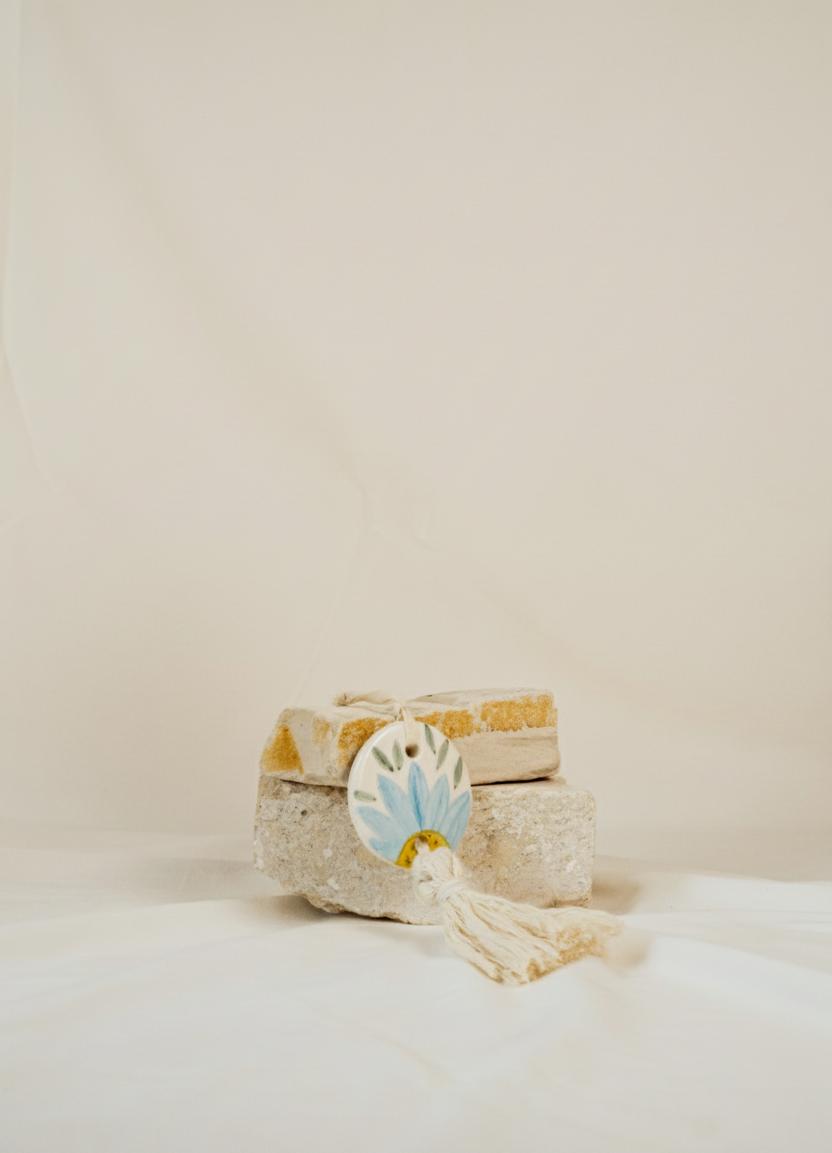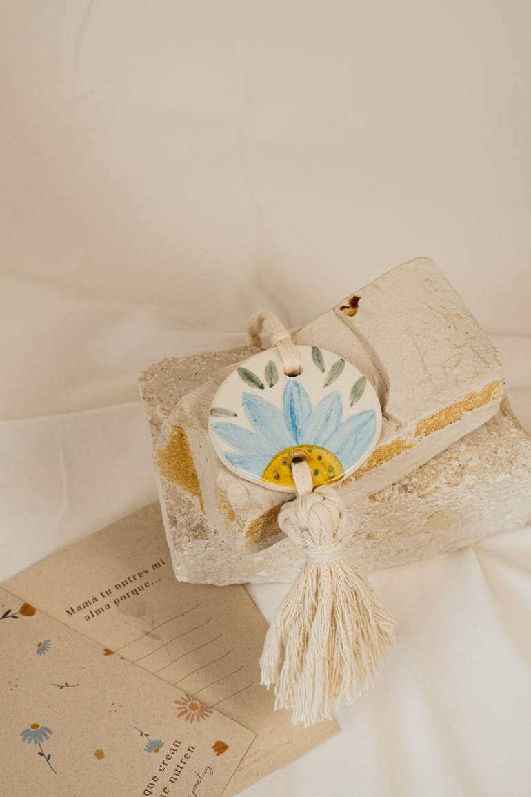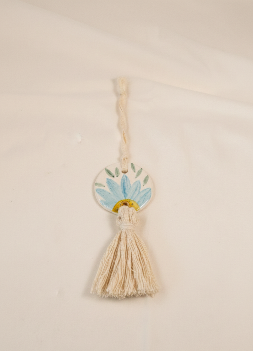 Amuleto en Cerámica Con Tejido Lobelia Azul