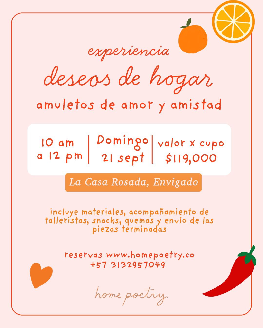 Lugar: La casa Rosada- Home Poetry Cra. 45 B # 38 B Sur 57, Alcalá Envigado.