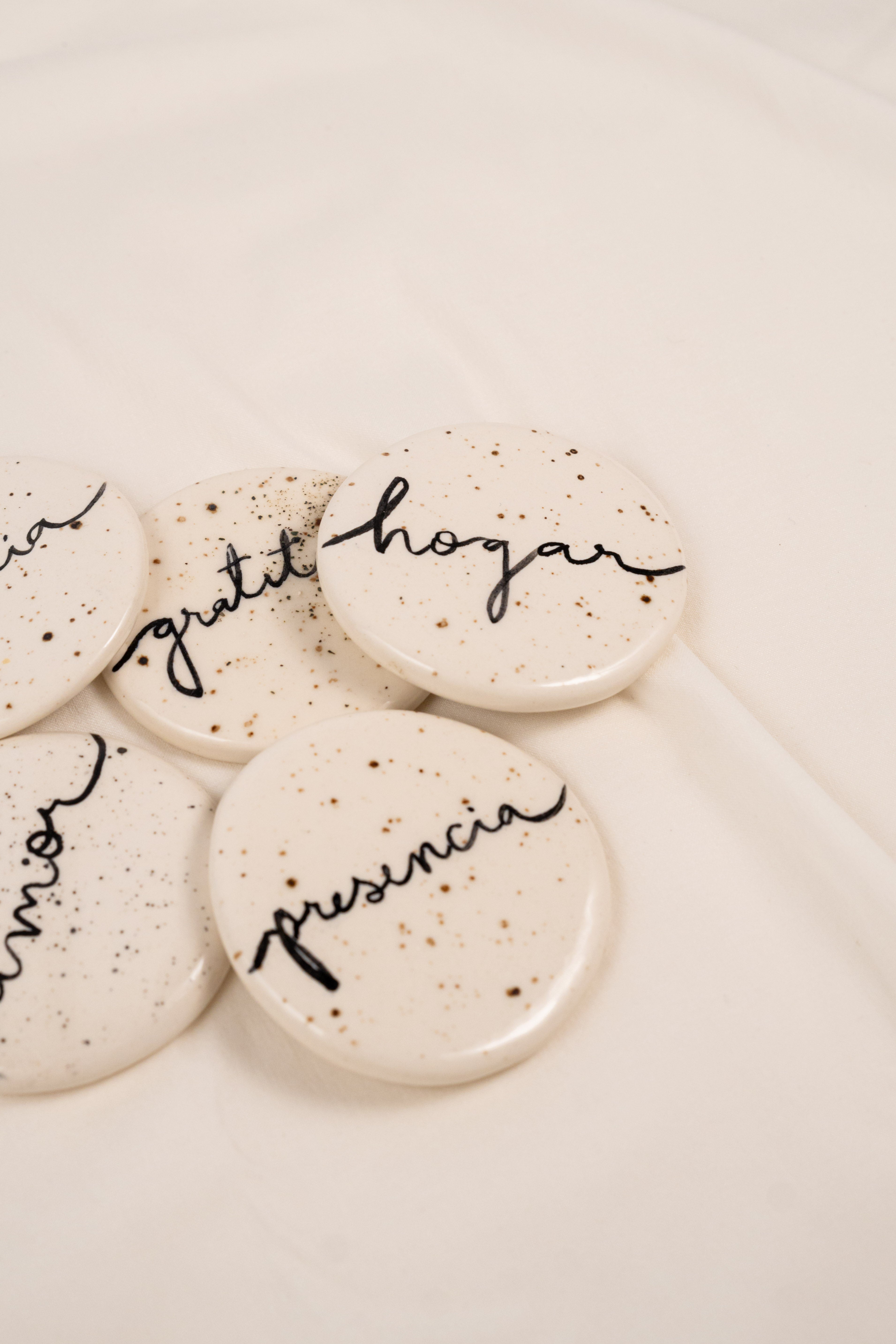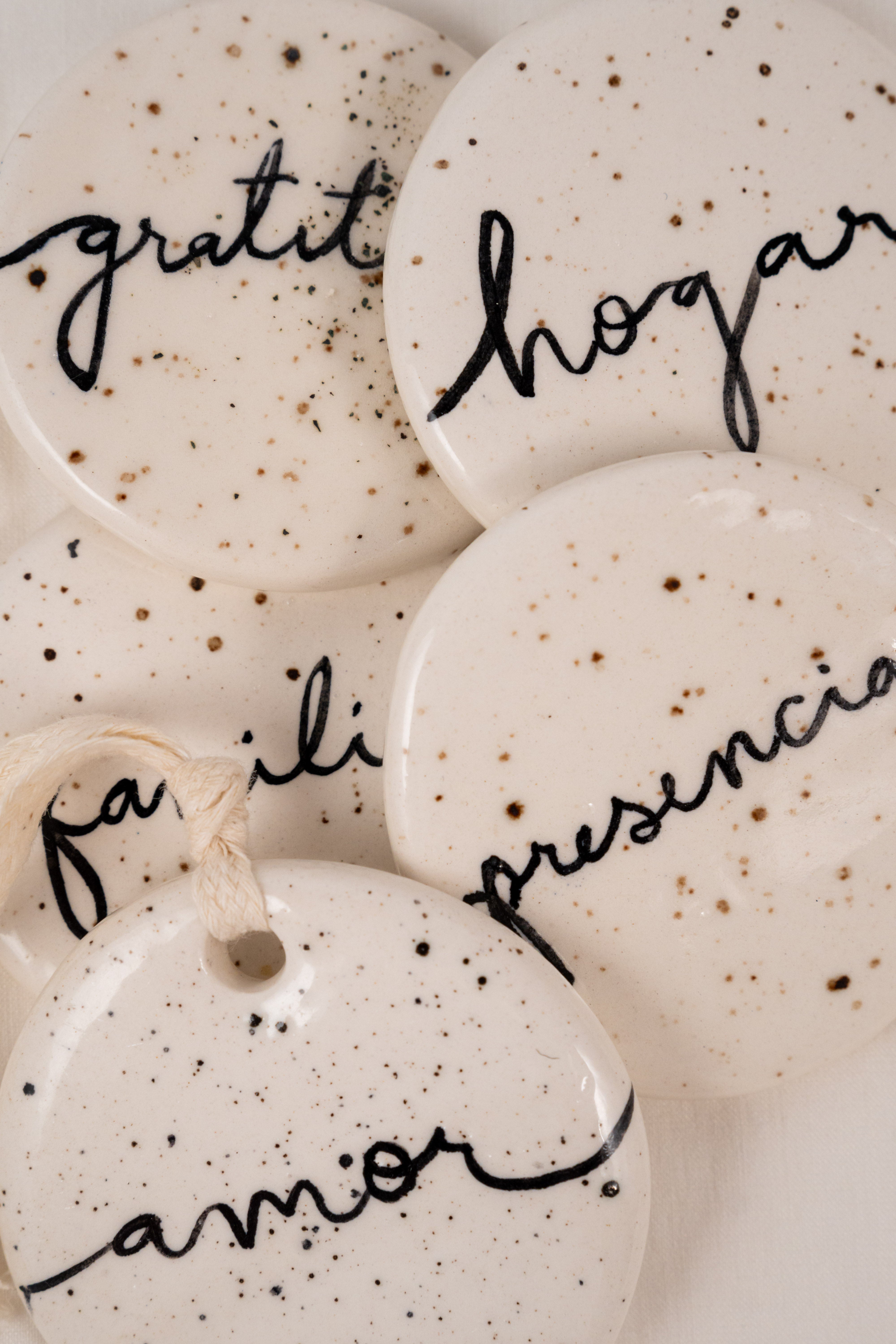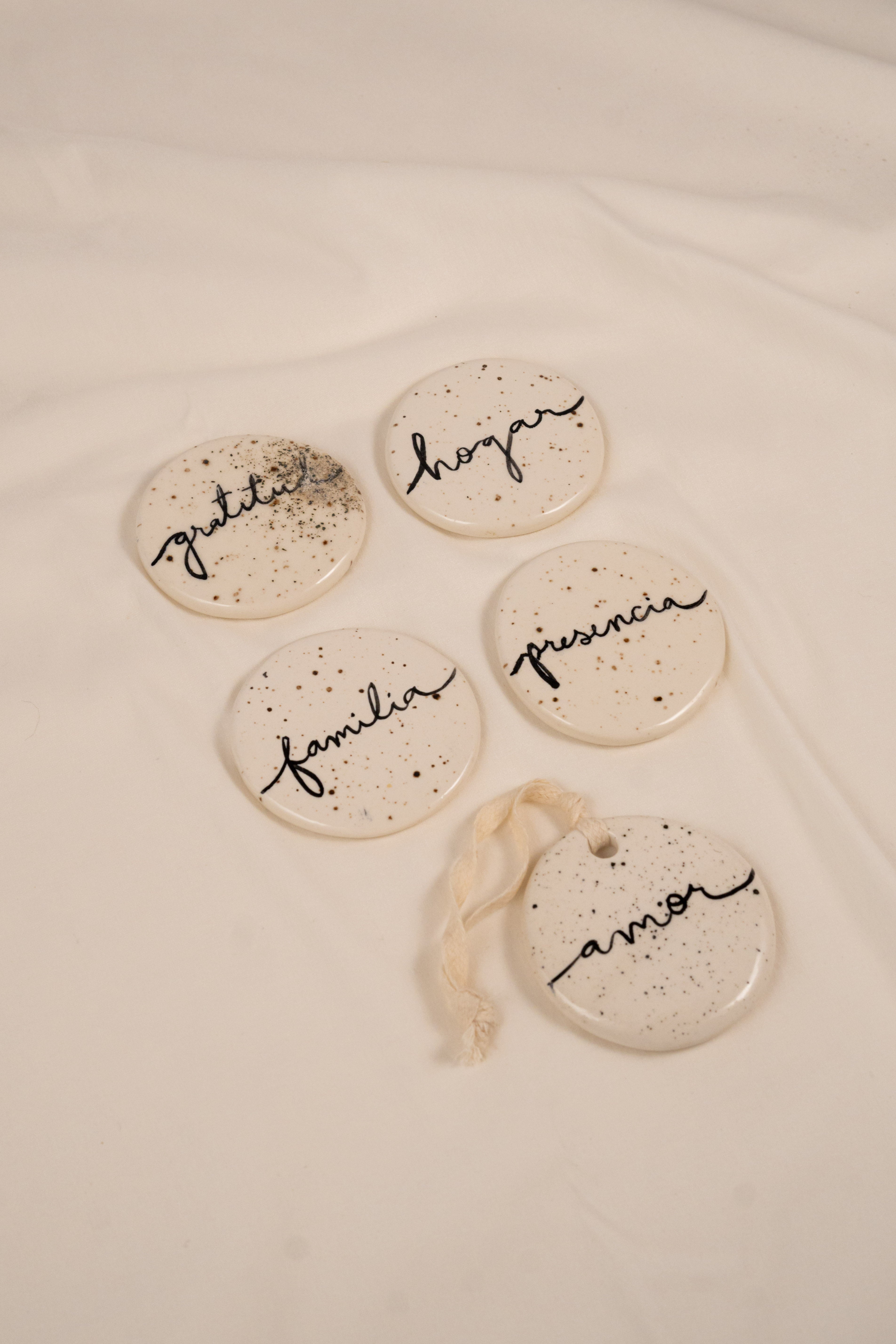 Amuletos en cerámica de 5 cm para acompañar procesos, regalar intención o sembrar una emoción en el espacio.